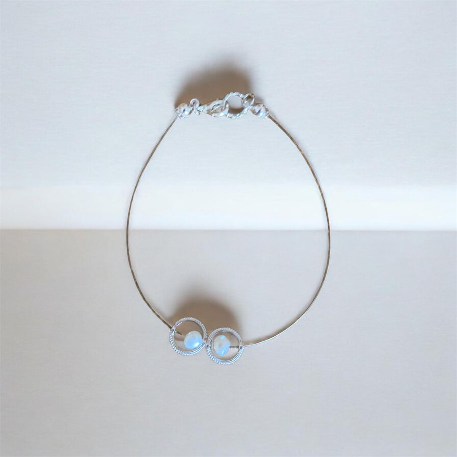 A delicate sterling silver chain bracelet & necklace set with freshwater pearls, featuring just enough sparkle to complement the design.
